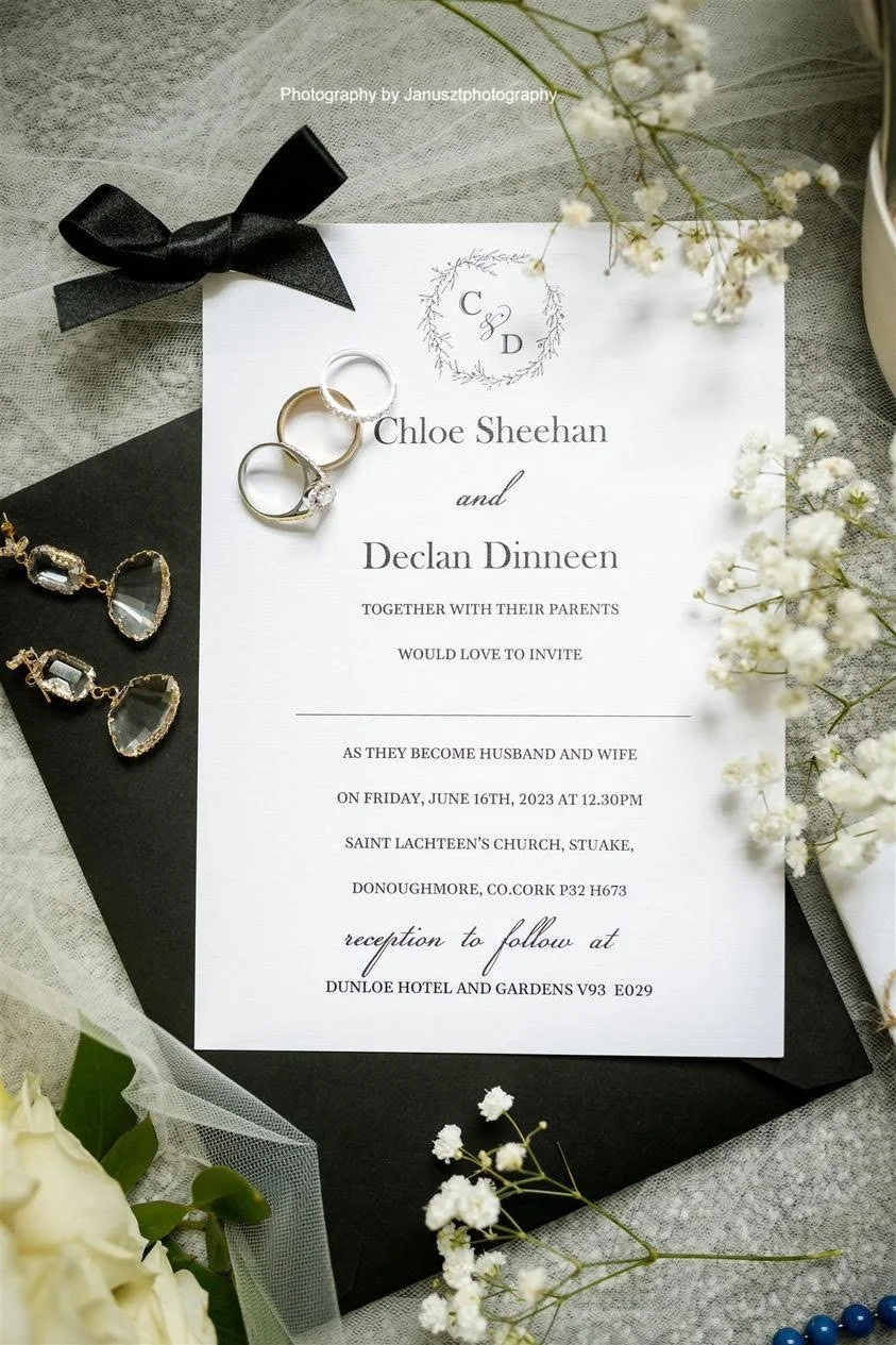 Black Customised Wedding Invitations with White Ink